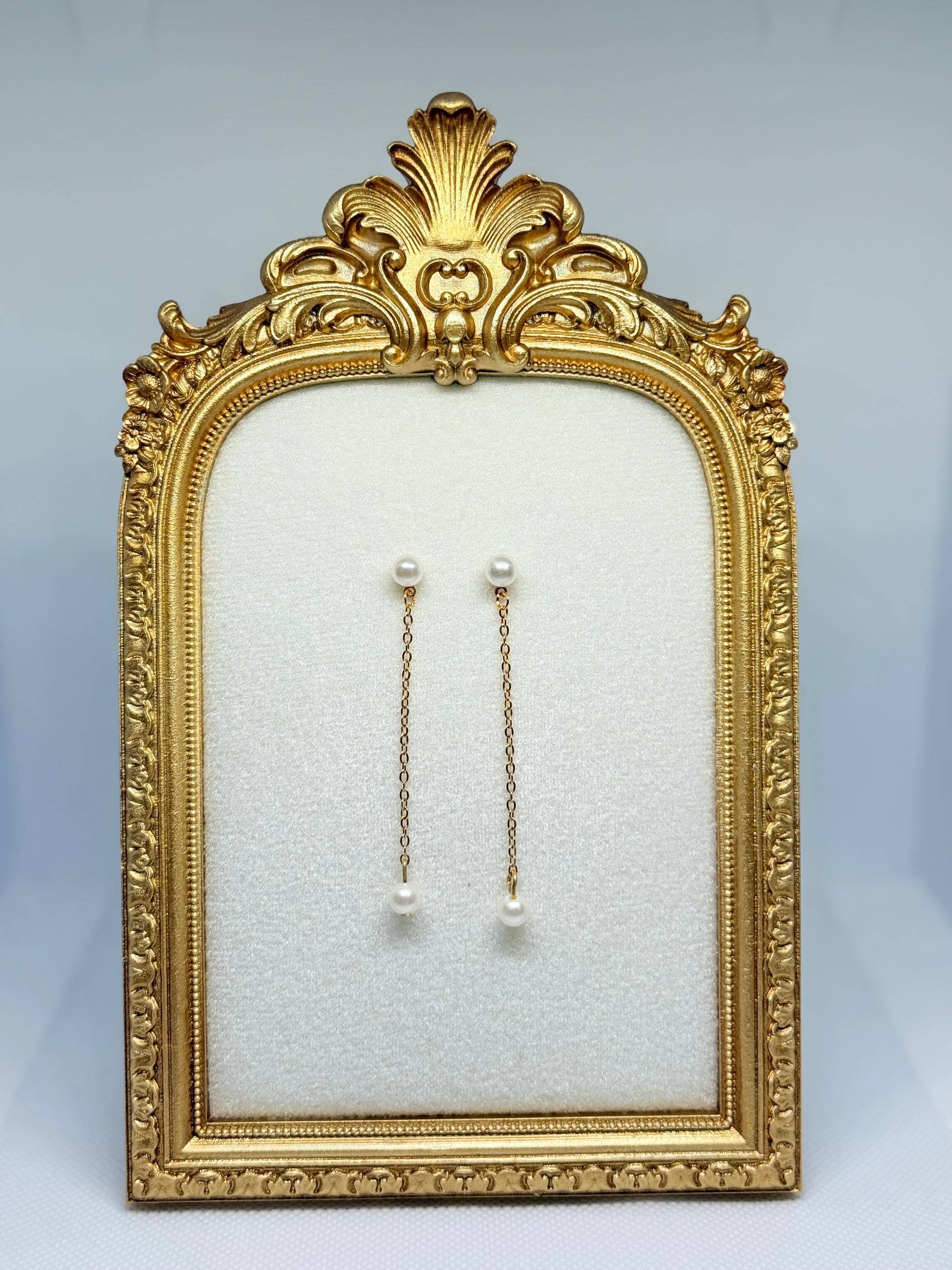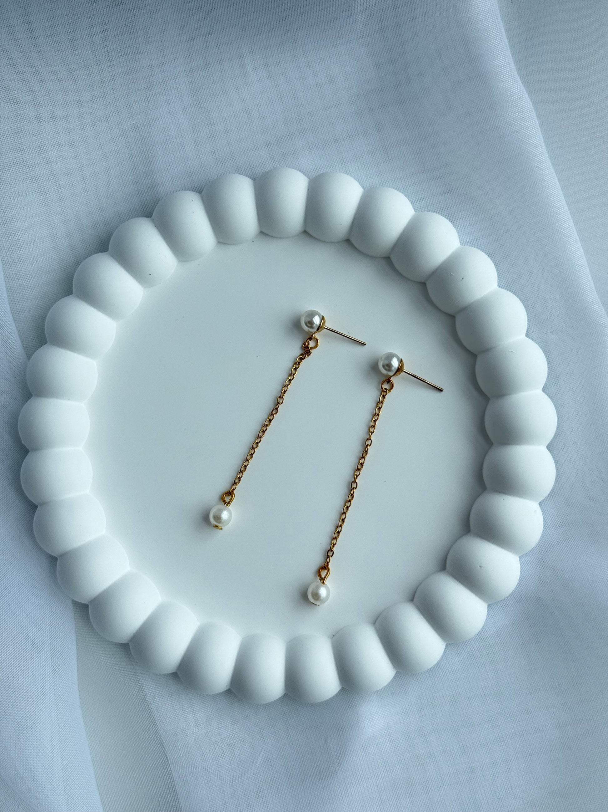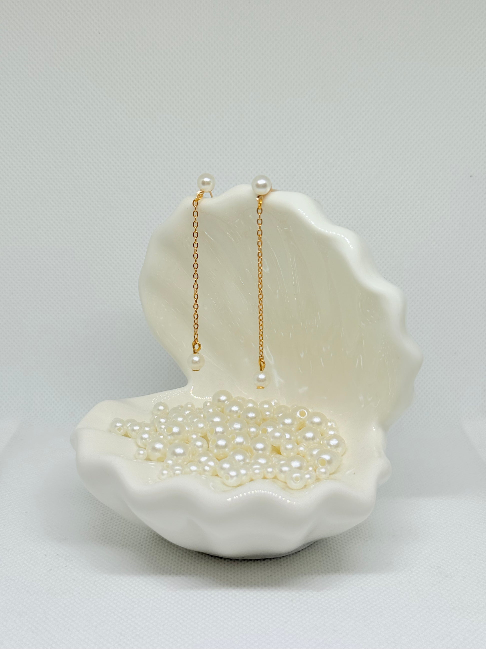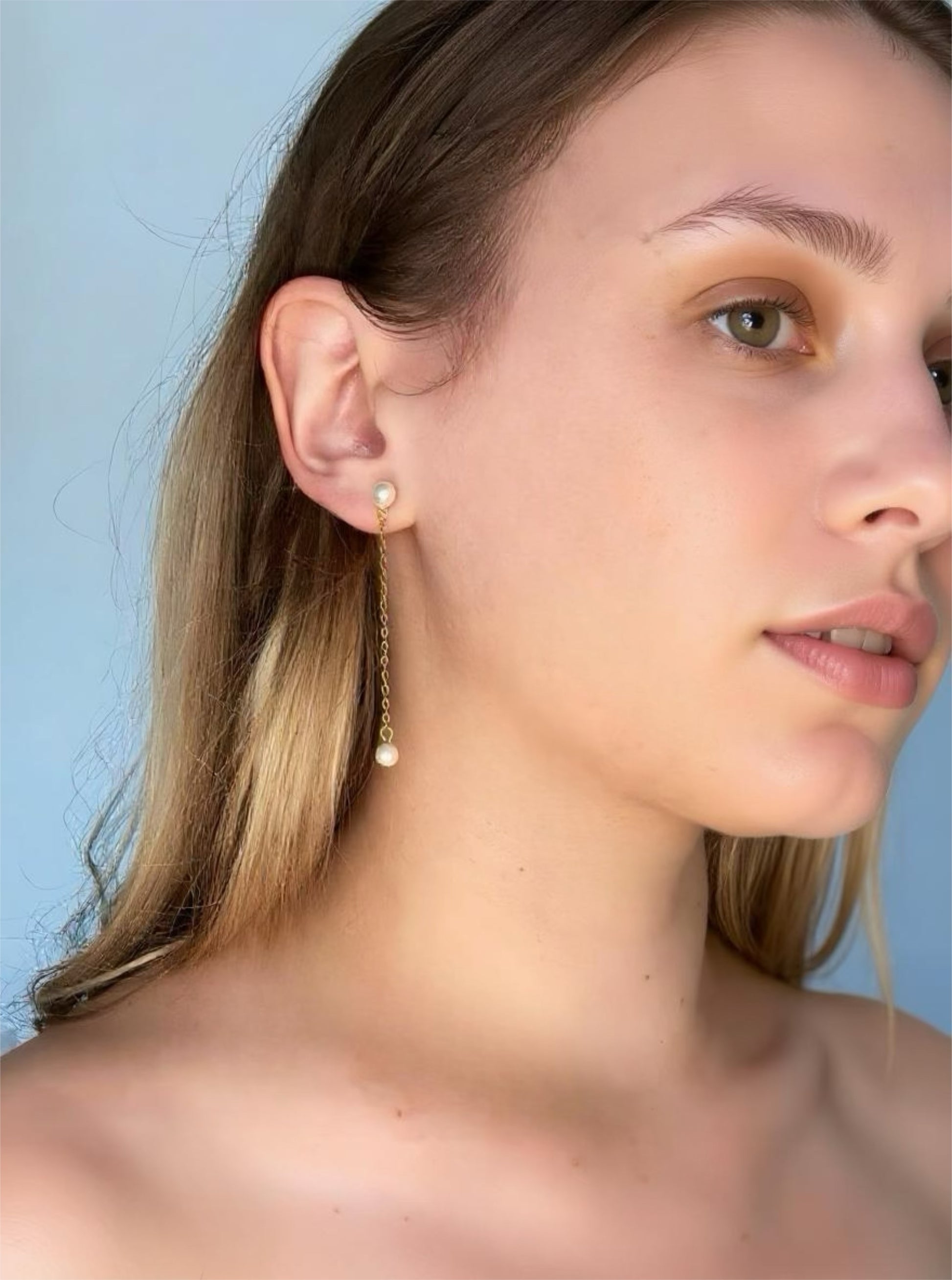 Minimalistes et poétiques, les boucles d’oreilles Élégance Suspendue offrent une délicate touche de grâce. Une fine chaîne dorée en acier inoxydable soutient une perle blanche lumineuse, créant un mouvement fluide et raffiné à chaque geste.
